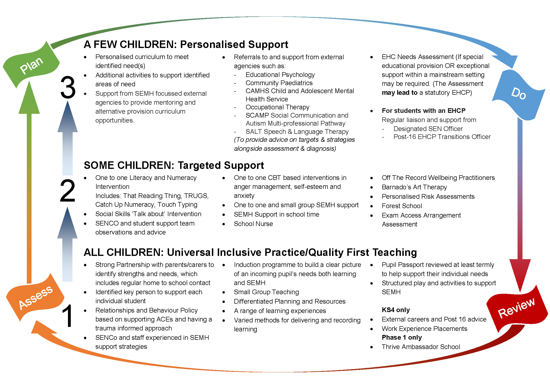 We work closely with many partners including parents/carers. Other specialist external specialists include the Youth Offending Team, CAMHS, Educational Psychology, School Nurse, Social Care and Community Paediatrician. Additionally where other agencies, such as Victims Support or counselling services, are working with our pupils, we seek to work together to ensure that appropriate support and strategies are in place.